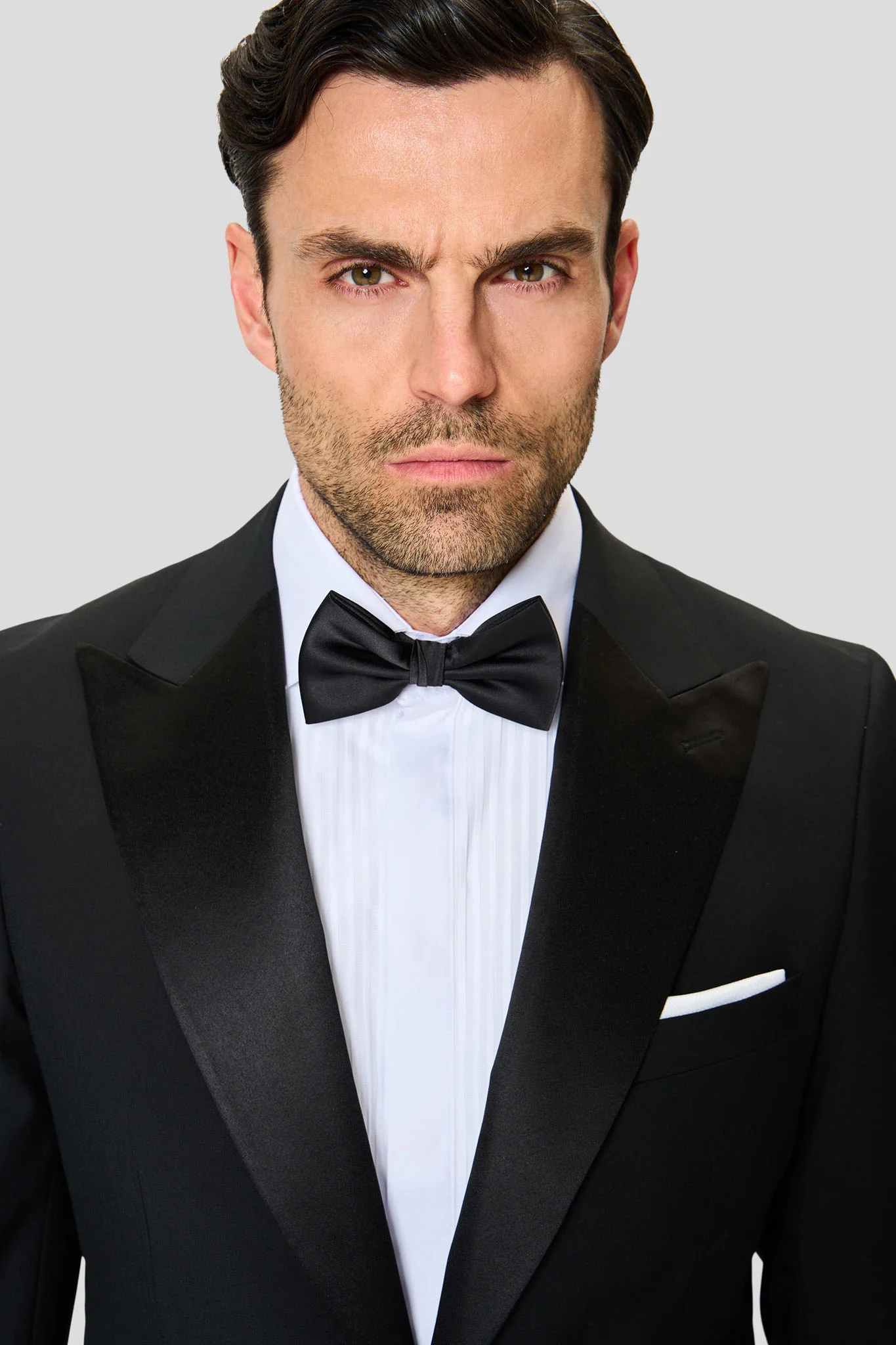 Vores PREMIUM sorte smoking jakkesæt er det ultimative valg til den moderne mand, der ønsker at skille sig ud med klassisk stil og eksklusiv kvalitet. Jakkesættet består af en elegant smoking blazer og matchende bukser begge i et luksuriøst uldmix, der sikrer både komfort og en skarp pasform. Den karakteristiske satin-revers og satin-stribe på bukserne fuldender det ikoniske smoking-look. Perfekt til bryllupper, gallaer og andre festlige begivenheder, hvor der kræves noget ekstra.